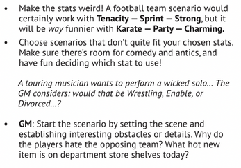 It's a game about exploding questions like "would this be Insight, or Perception?" into a whole premise, with a little bit of silly party game energy thrown in.